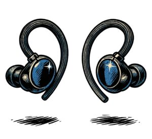 Für die online Stunden benötigst du noch kabellose Kopfhörer. Achte darauf, dass sie fest sitzen, denn beim Laufen oder Reiten können sie schnell raus fallen. Hier ein Beispiel von Kopfhörer die fest sitzen: