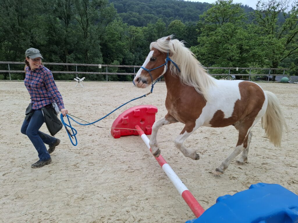 – Wer nicht reiten möchte, arbeitet weiter am Boden in Freiheit (Liberty) und übt das Springen ohne Seil – leicht, spielerisch und auf Basis echter Kooperation.