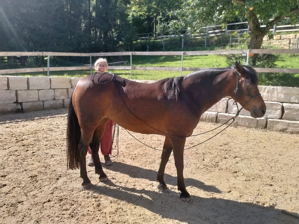 Lerne deinen Körper einsetzen und die Zügel immer weniger zu benutzen. Am langen Zügel, mit 2 Sticks oder mit Halsring reiten hat immer das Ziel, dass der Mensch seinen Körper mehr einsetzt, als seine Hände. Das Pferd lernt mehr mitzudenken und bekommt Verantwortungen, die es sicherer und mutiger machen. Du lernst loszulassen und viele Übungen kennen, wie du mit Spiel und Spass reiten kannst.